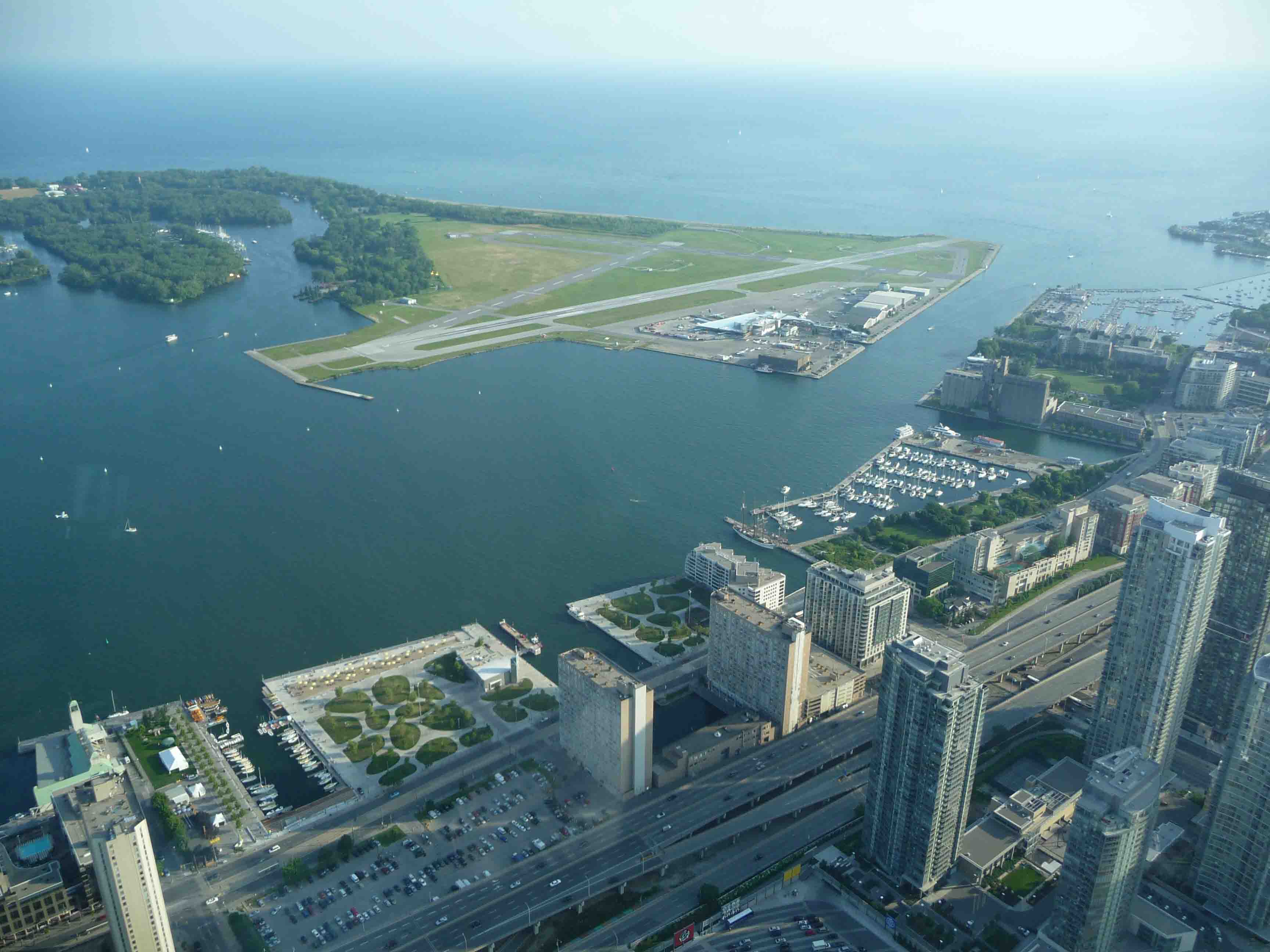 Toronto as seen from the CN Tower in direction of Toronto Island Airport.