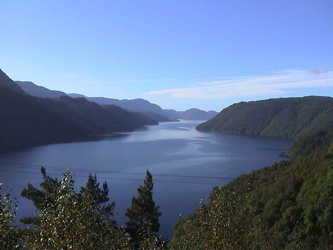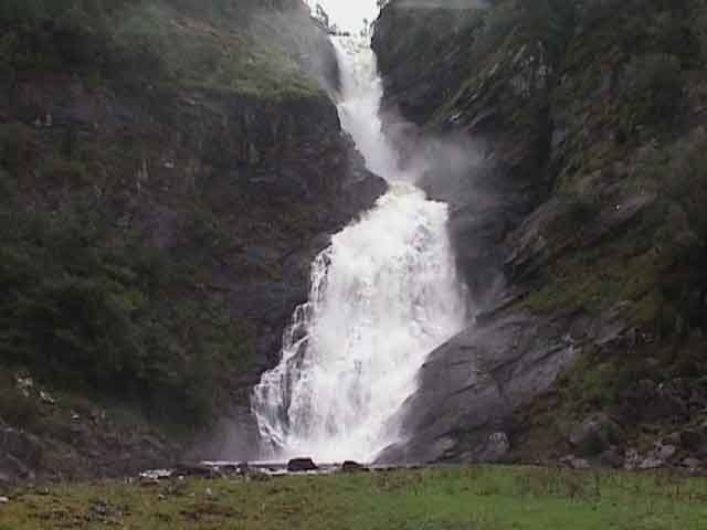 Waterfall Huldrefossen with a free fall of 90 metres.